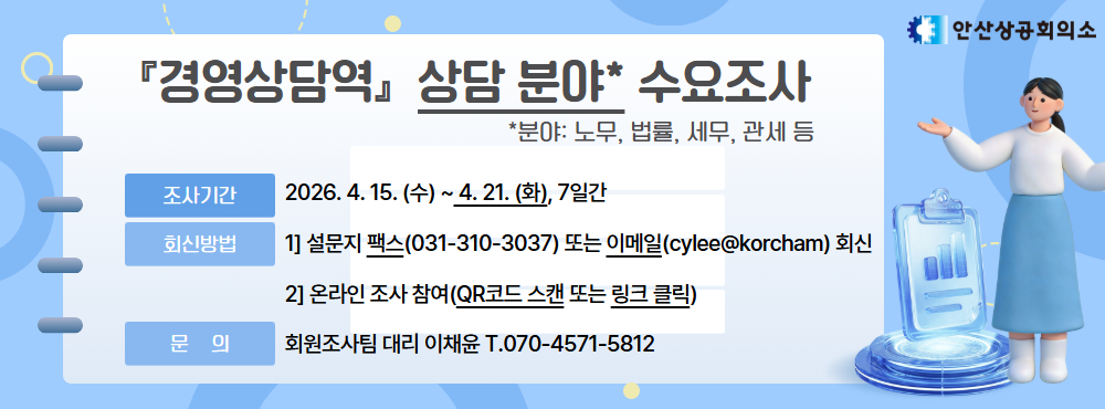 대표전화 : 031-410-3030 | 대표팩스 : 031-410-3037 | 문의 : ansancci@korcham.net