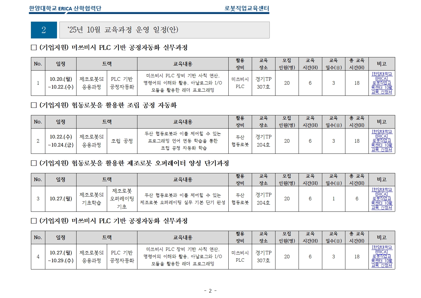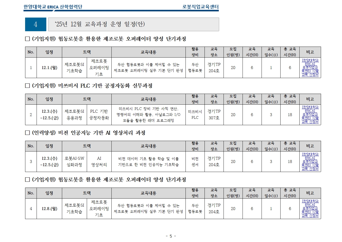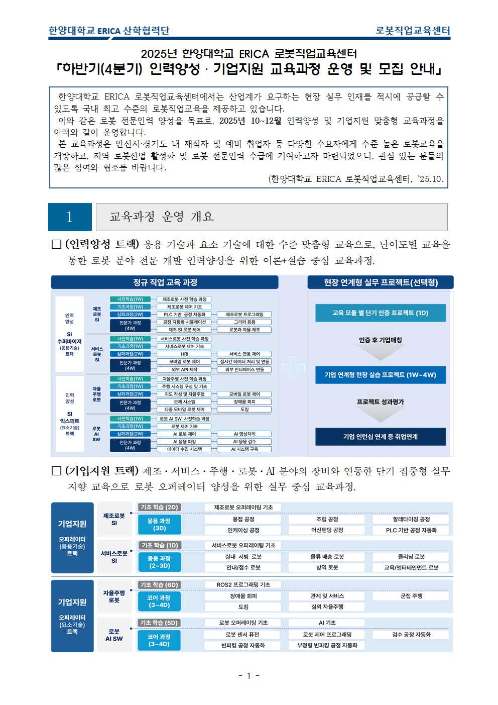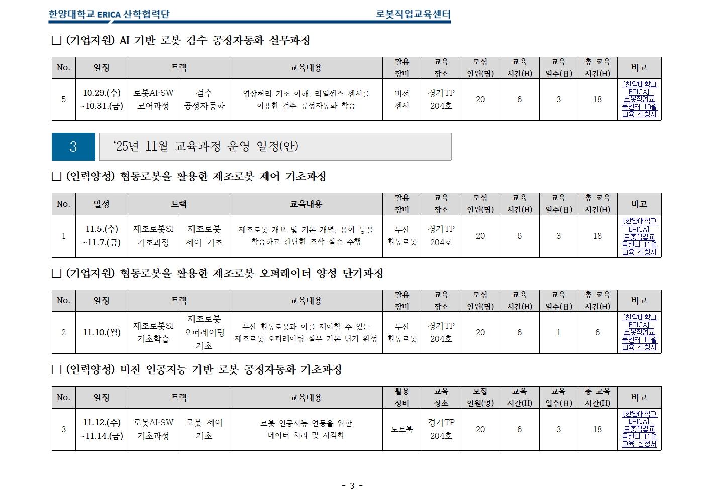 | ‒ | [경기테크노파크] 『2025년 로봇 직업교육센터 인력양성·기업 지원 교육』 모집 |