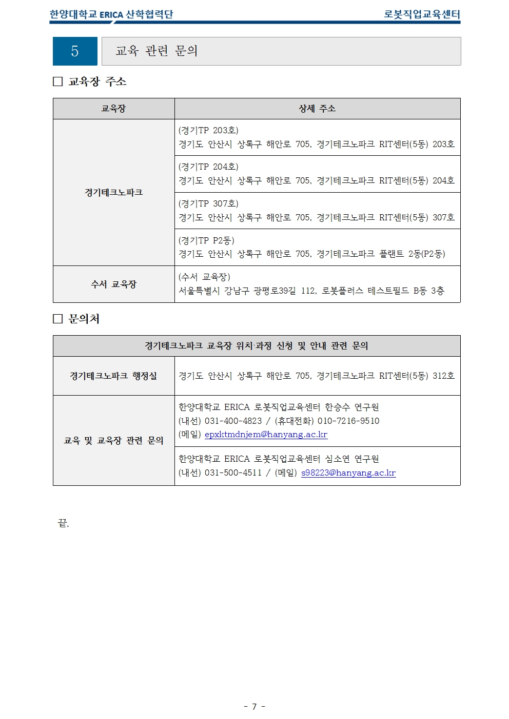 | 제목 | [경기테크노파크] 『2025년 로봇 직업교육센터 인력양성·기업 지원 교육』 모집 | ||