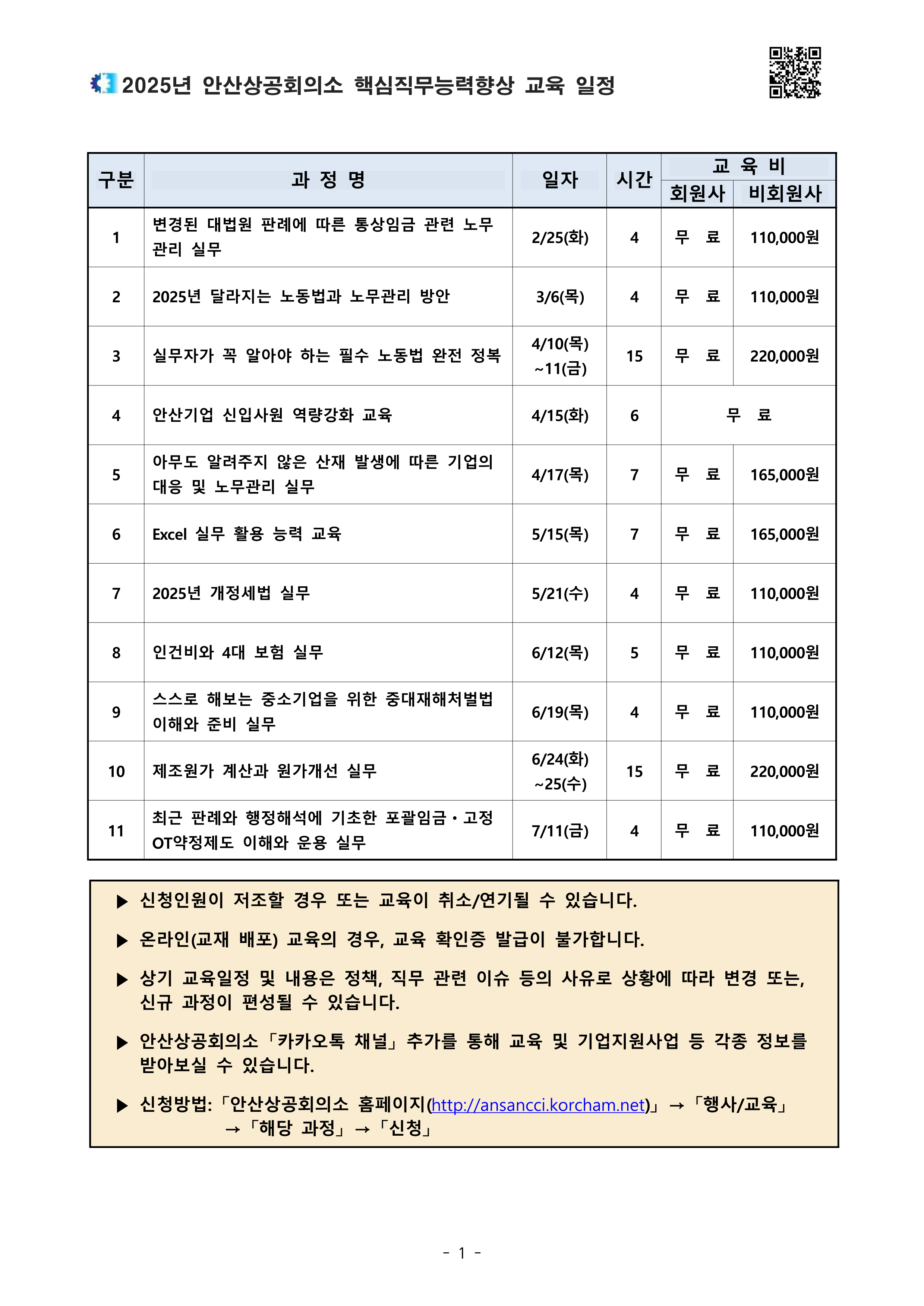 | 제목 | 2025년 안산상공회의소 연간 교육 과정 | ||