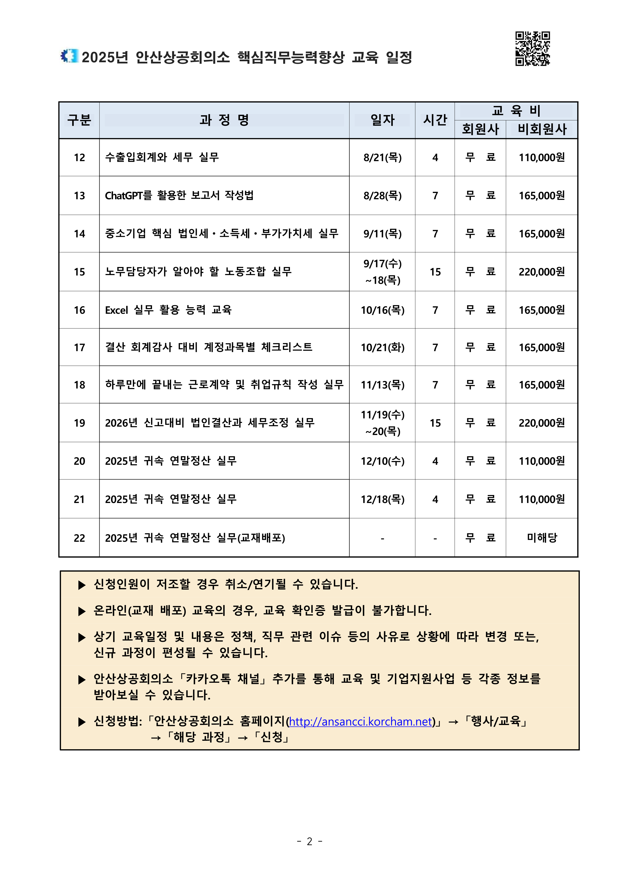 | ‒ | 2025년 안산상공회의소 연간 교육 과정 |