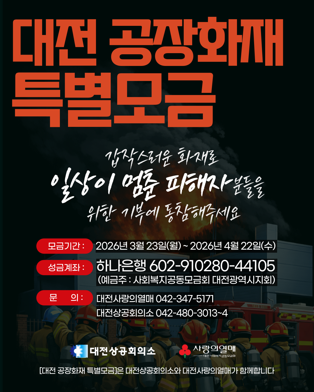 | ‒ | [대전상의] 『대전 공장화재 특별모금』 안내 |