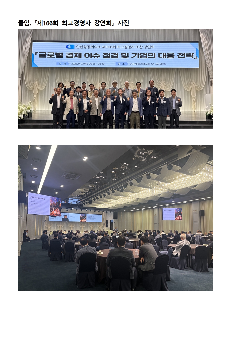 제목 | 안산상공회의소, 제166회 최고경영자 강연회 개최 | ||