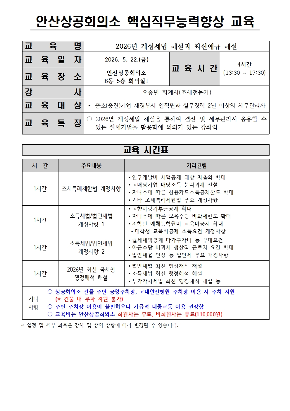 | ‒ | [5/22(금)] 2026년 개정세법 실무 |